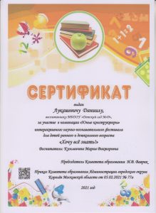 “Реализация парциальной модульной программы STEM-образование для детей дошкольного возраста в соответствии с требованиями ФГОС ДО”, 72 ч., 2019 г.