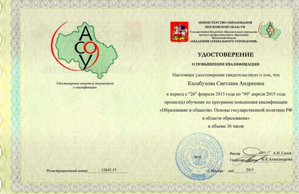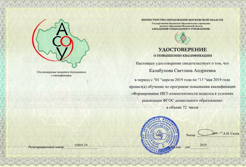 ГБОУ ВПО МО “Академия социального управления”«Формирование ИКТ-компетентности педагога в условиях реализации ФГОС ДО», 72 ч.